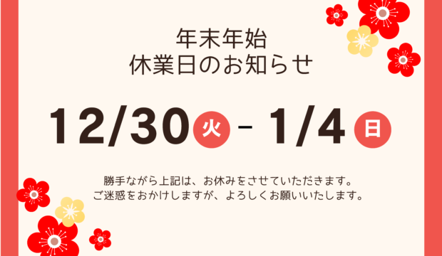 休業期間:2025年12月30日(火)~2026年1月4日(日)